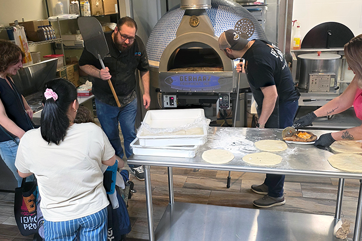 During their visit, Gerharz team members showed students the various parts of the business, including the public showroom, warehouse, design services, concession supplies, and parts department. Students also spent time in the company’s test kitchen, where they interacted with demonstration equipment in a fun and memorable way. They decorated cookies baked in a RATIONAL combi oven, cooked their own personal pan pizzas in a rotating deck pizza oven, and made cotton candy in a floss machine.
